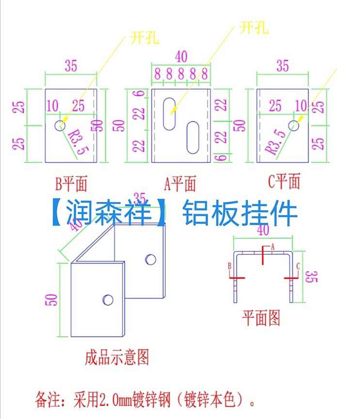 U型鋁板掛件現(xiàn)有規(guī)格(其他規(guī)格可來圖定制加工)